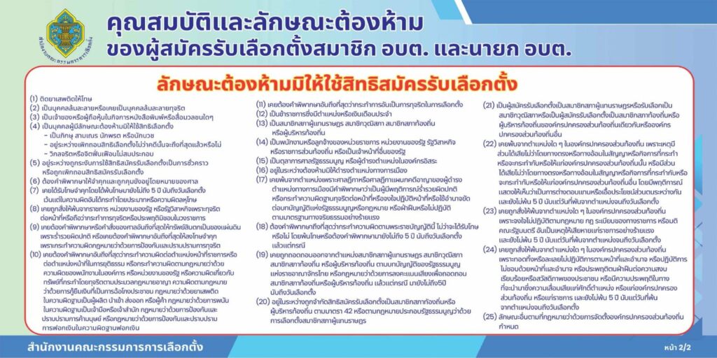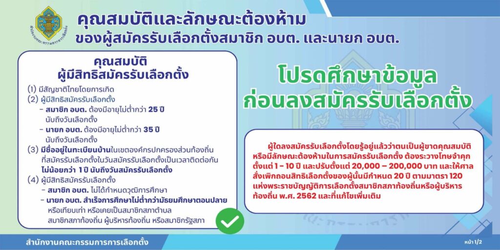 คุณสมบัติและลักษณะต้องห้ามของผู้สมัครรับเลือกตั้งสมาชิก อบต.และนายก อบต. Published , 28 พฤศจิกายน 2568 | By อบต.ลำสนธิ จ.ลพบุรี Post Views: 9