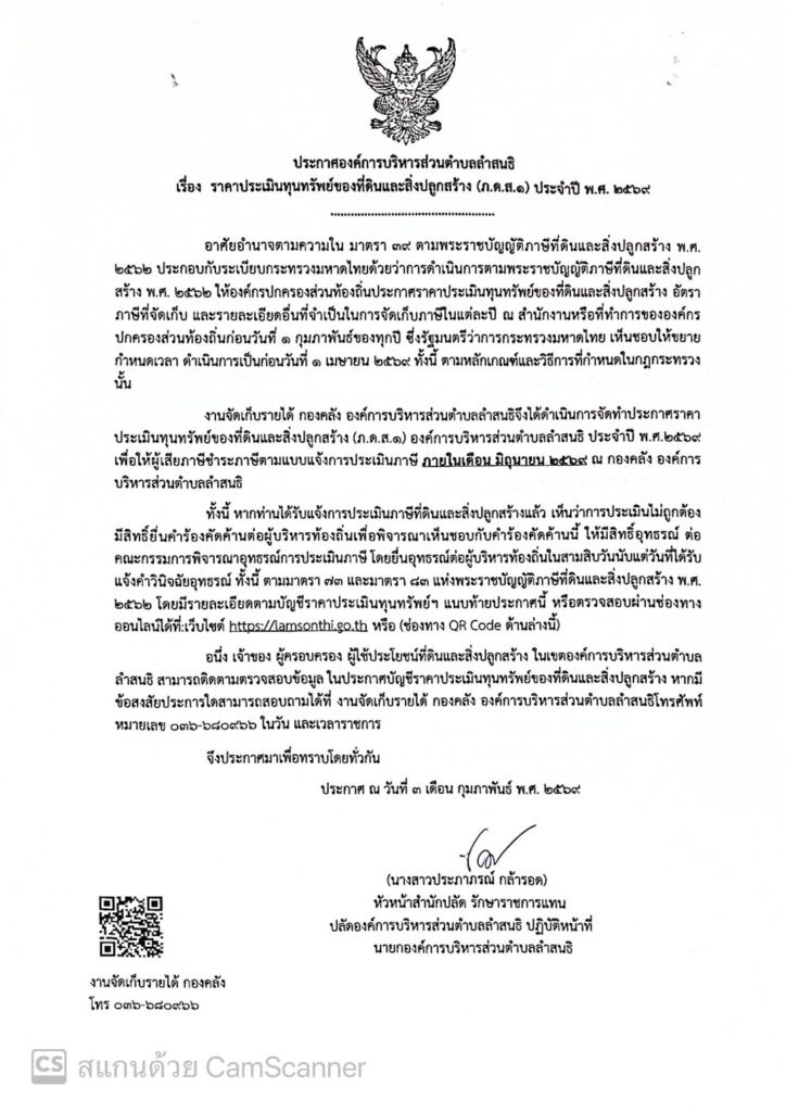 ประกาศองค์การบริหารส่วนตำบลลำสนธิ เรื่องราคาประเมินทุนทรัพย์ของที่ดินและสิ่งปลูกสร้าง(ภ.ด.ส.1) ประจำปี พ.ศ.2569 Published , 6 กุมภาพันธ์ 2569 | By อบต.ลำสนธิ จ.ลพบุรี ภดส.1-1ดาวน์โหลด Post Views: 3