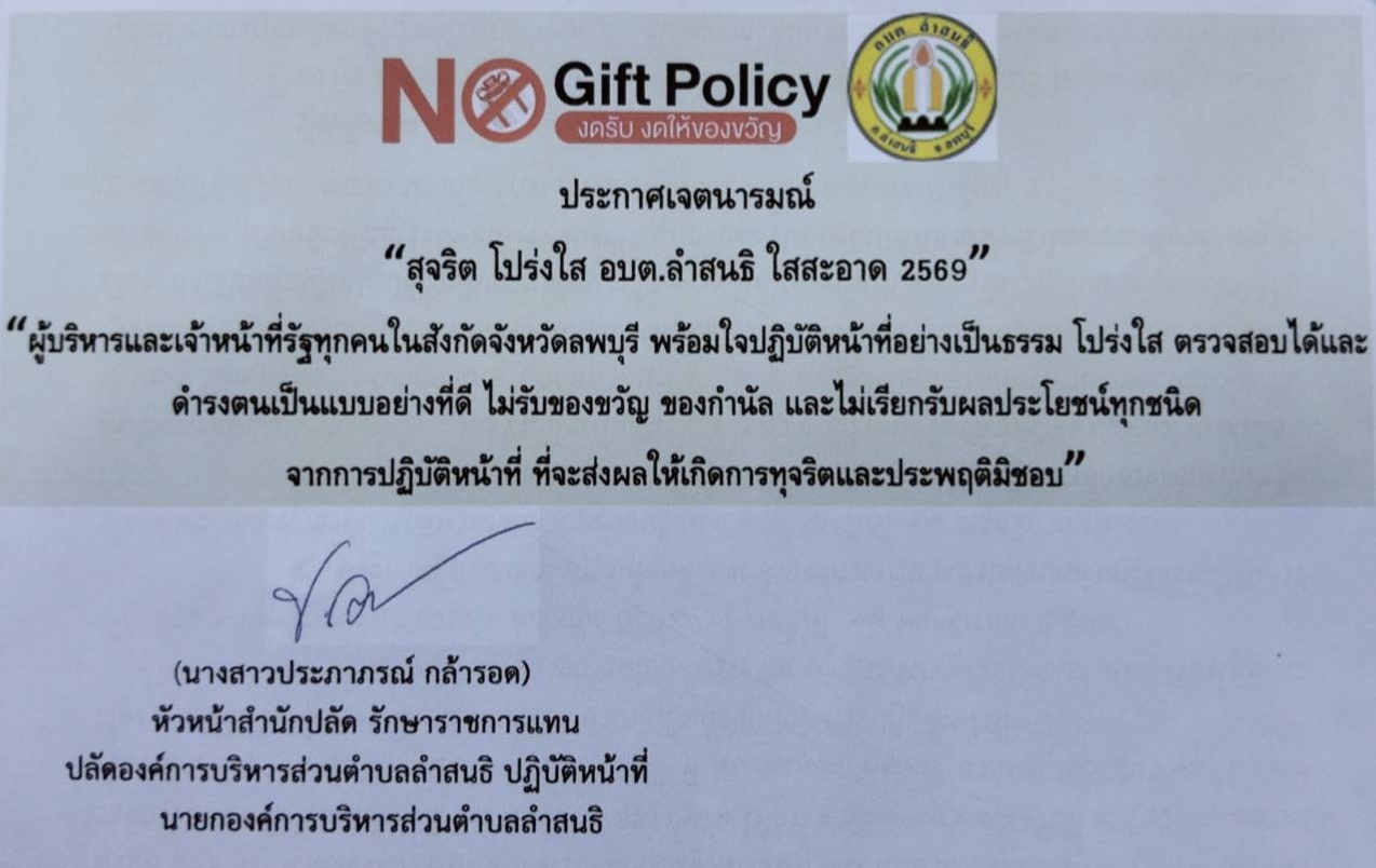 ประกาศเจตนารมณ์ เรื่อง “สุจริต โปร่งใส อบต.ลำสนธิ ใสสะอาด 2569” และ “งดรับ งดให้” ของขวัญ ของกำนัลทุกชนิดจากการปฏิบัติหน้าที่ (No Gift Policy) Published , 30 ธันวาคม 2568 | By อบต.ลำสนธิ จ.ลพบุรี ข้อ-O21-ประกาศเจตนารมณ์-No-gift-Pilicy-2568ดาวน์โหลด 13347ดาวน์โหลด Post Views: 9